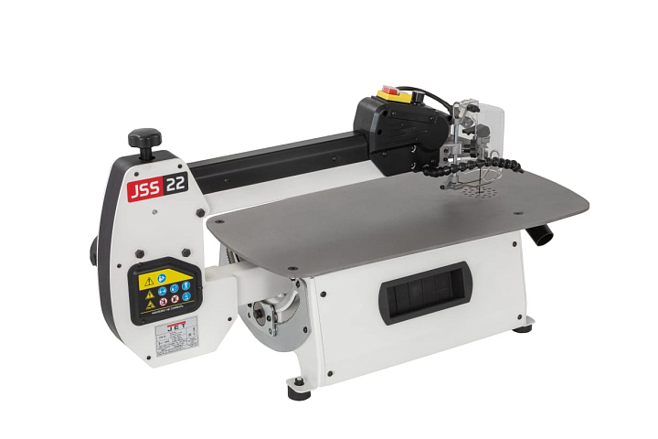 JSS-22 – новинка 2025. Абсолютно новый профессиональный лобзиковый станок в линейке JET. Станок разработан для достаточно интенсивного, профессионального использования. От недорогих, любительских моделей его отличает целый ряд особенностей. Прежде всего большой площади, точный лист рабочего стола с особенным покрытием для стабильной фиксации и удобного перемещения заготовки при пилении. Все детали рамы маятникового механизма и подстолья изготовлены и толстой стали.